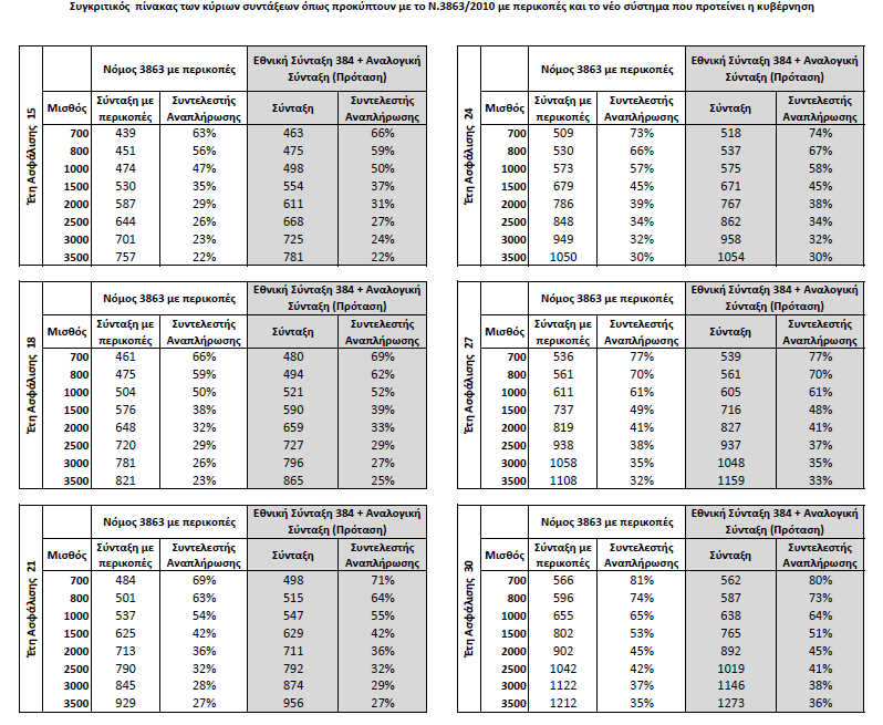 Αποροία όμως προκαλεί η "χρησιμότητα" ενός τέτοιου πίνακα τη στιγμή που οι δανειστές δεν έχουν αποδεχτεί το κυβερνητικό σχέδιο και ζητούν χαμηλότερα ποσοστά αναπλήρωσης σε σχέση με τα ήδη χαμηλά που προβλέπει η πρόταση Κατρούγκαλου. Εντύπωση πάντως προκαλεί το γεγονός ότι δεν αναφέρεται στον πίνακα, πόση σύνταξη θα πάρει κάποιος με πάνω από 30 χρόνια ασφάλισης.