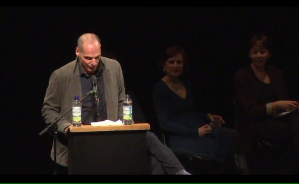 Τρεις μέρες μετά την ανάληψη των καθηκόντων μου, ο πρόεδρος του Eurogroup Γερούν Ντάισελμπλουμ με επισκέφθηκε και μέσα στα πρώτα δέκα λεπτά μου είπε, "είτε θα δεχτείτε τις υπάρχουσες οικονομικές πολιτικές, το πρόγραμμα όπως είναι, ή θα κλείσουμε τις τράπεζές σας". Το 1967 ανέτρεψαν την ελληνική δημοκρατία με τα τανκς, τον Ιούλιο του 2015 το έκαναν με τις τράπεζες" απάντησε ο κ. Βαρουφάκης και δήλωσε υπερήφανος που του είπε ότι η ελληνική κυβέρνηση δεν ήταν διατεθειμένη να υποταχθεί. "Ο μισθός σας δεν καταβάλλεται, επειδή άκαρδοι, απρόσωποι γραφειοκράτες που καθοδηγούνται από δεξιούς πολιτικούς που δεν μπορούν να δουν πέρα από τη μύτη τους σε ό,τι αφορά τα συμφέροντα των ίδιων των εθνών τους, έκλεισαν τις τράπεζές μας και μας επέβαλαν ελέγχο κεφαλαίων. Μπορείτε να στρέφεστε εναντίον μου, αλλά προτείνω να δείτε την πραγματική αιτία για το γεγονός ότι δεν μπορείτε να πάρετε τον μισθό σας, που είναι ότι η τρόικα έκλεισε τις τράπεζες" κατέληξε ο Γιάνης Βαρουφάκης.