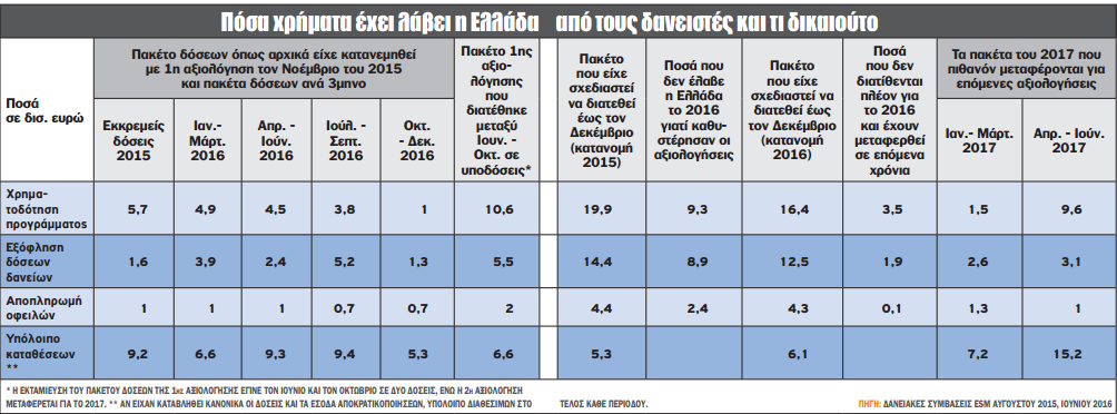 Οι δόσεις των 9,3 δισ. ευρώ που δεν... ήρθαν είναι τα λεφτά που έχει διαθέσιμα η ελληνική οικονομία και η αγορά μέσα από το πακέτο των 86 δισ. ευρώ και έχει "χρυσοπληρώσει" στους δανειστές, με διαδοχικά πακέτα μέτρων, αλλά χωρίς να φτάνει στην... πηγή.