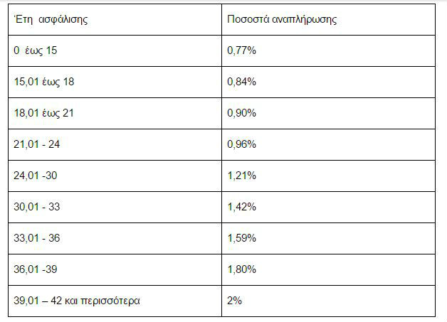 Το ανταποδοτικό μέρος της σύνταξης αντιστοιχεί στα κατ' έτος ποσοστά αναπλήρωσης για το σύνολο του χρόνου ασφάλισης επί των συνταξίμων αποδοχών.