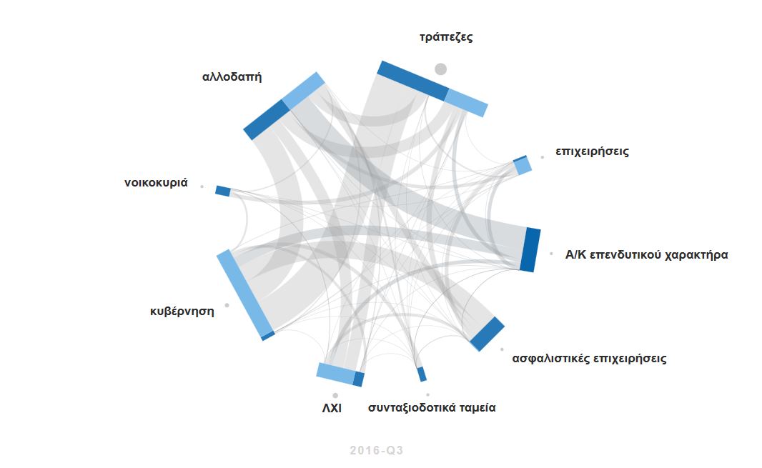 Οι τεχνικές υπηρεσίες της ΕΚΤ έχουν ανεβάσει στην ιστοσελίδα της Ευρωπαϊκής Κεντρικής Τράπεζας ένα πίνακα που επικαιροποιείται διαρκώς και καταγράφει το ποιος χρωστάει σε ποιόν, μέχρι πότε και πόσα, ποιος είναι ο... δυναμικός κίνδυνος στο χρέος αυτό. Και κυρίως πως η αλληλοσύνδεση τραπεζών, κρατών, επενδυτικών funds, ασφαλιστικών Ταμείων και ιδιωτών δεν μπορεί να αφήσει αδιάφορο κανέναν για την τύχη του άλλου.