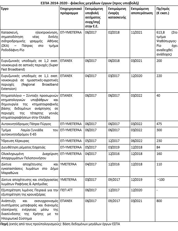 Ποια είναι τα 13 projects που ανήκουν στα μεγάλα έργα ΕΣΠΑ 2014-2020 των οποίων "η διαδικασία υλοποίησης προβλέπεται να αρχίσει”;