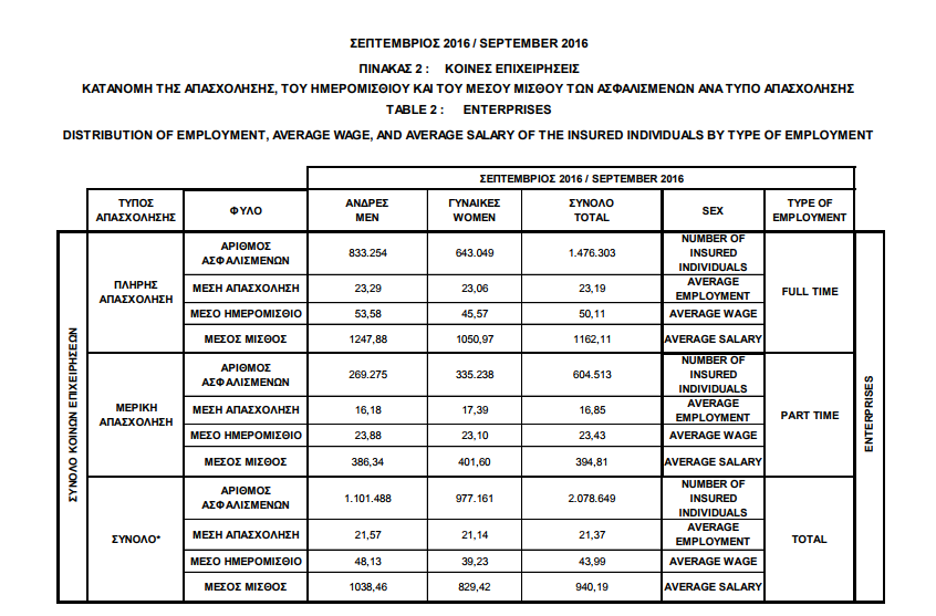 Στις κοινές επιχειρήσεις με πλήρη απασχόληση το μέσο ημερομίσθιο μειώθηκε κατά 0,65%, ενώ ο μέσος μισθός μειώθηκε κατά 0,84%.