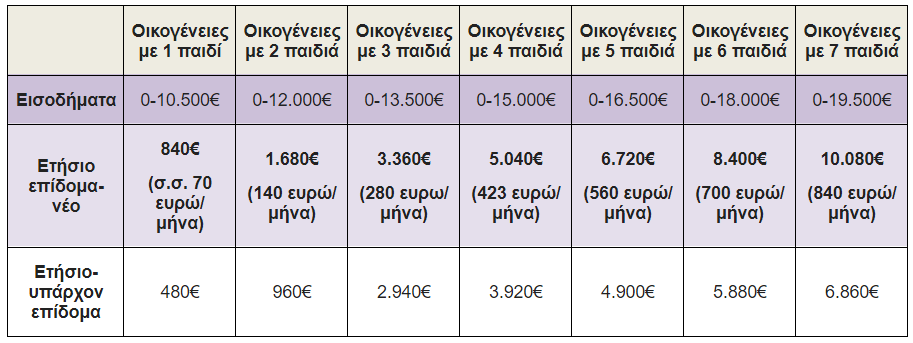 Οι νέες κλίμακες των οικογενειακών επιδομάτων ανάλογα με το εισόδημα