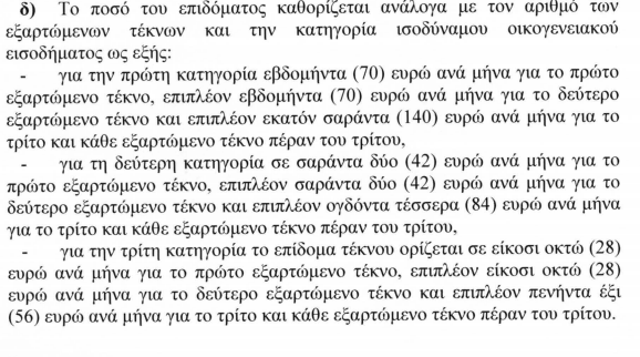 -την αλλαγή των εισοδηματικών κριτηρίων για την παροχή των επιδομάτων τέκνων
