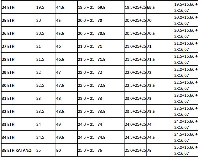 Μέχρι και 19 πλήρη έτη ασφάλισης: 379,20€
