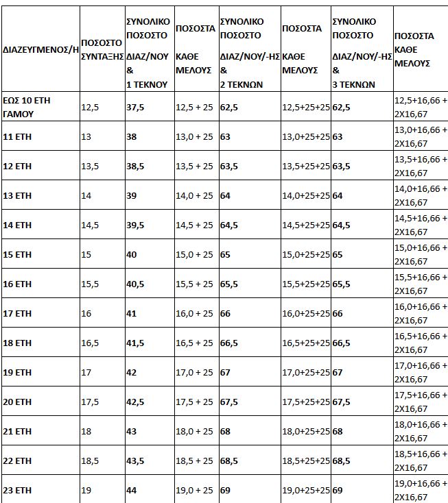 1 παιδί αμφοτεροπλεύρως ορφανό με δικαίωμα σε σύνταξη και από τους δύο γονείς |