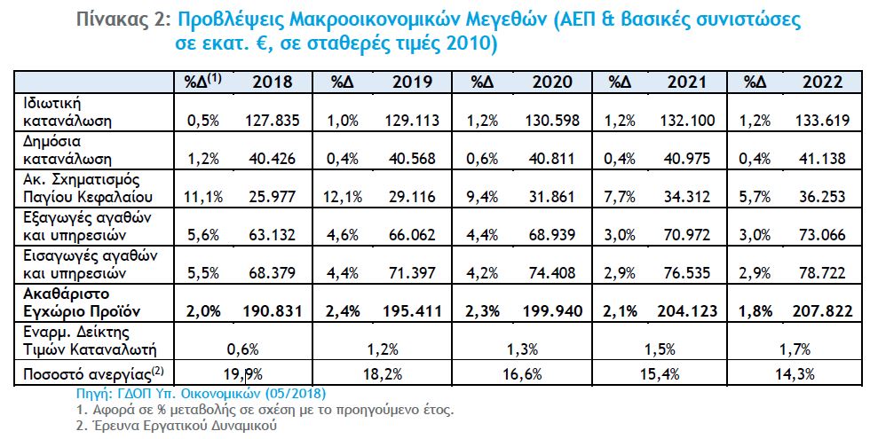 Εξάλλου, σύμφωνα με το μεσοπρόθεσμο, το σενάριο των μεσοπρόθεσμων μακροοικονομικών εξελίξεων της περιόδου 2019-2022 στηρίζεται στις εξής αρχικές παραδοχές: