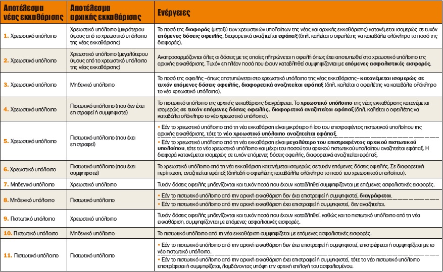 Αναλυτικά, όλες οι περιπτώσεις συμψηφισμών υπολοίπων (νέων και αρχικών), όπως προκύπτουν από τις διευκρινίσεις που έδωσε το υπουργείο και κωδικοποιεί το Capital.gr, έχουν ως εξής: