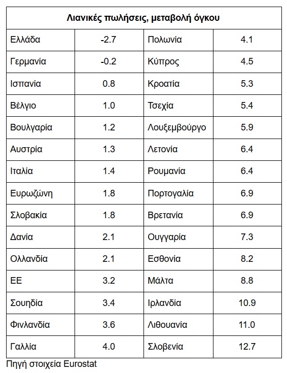 Αρνητικό ρεκόρ Ελλάδας στις λιανικές πωλήσεις