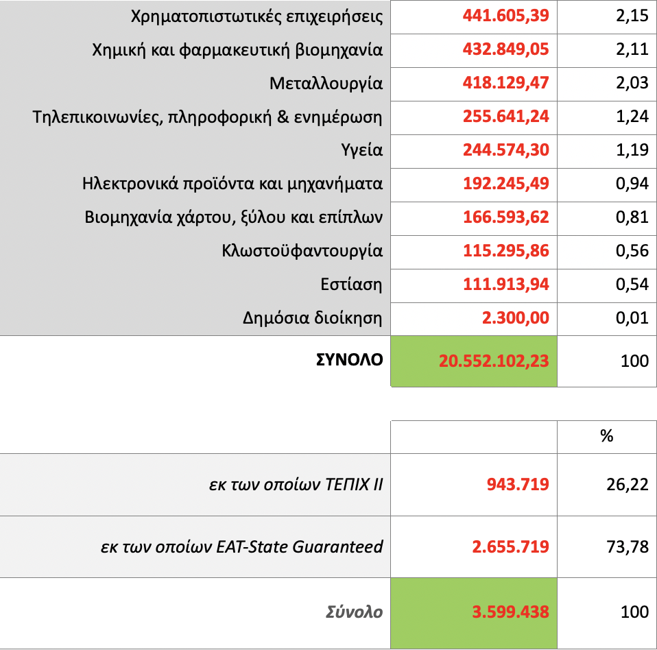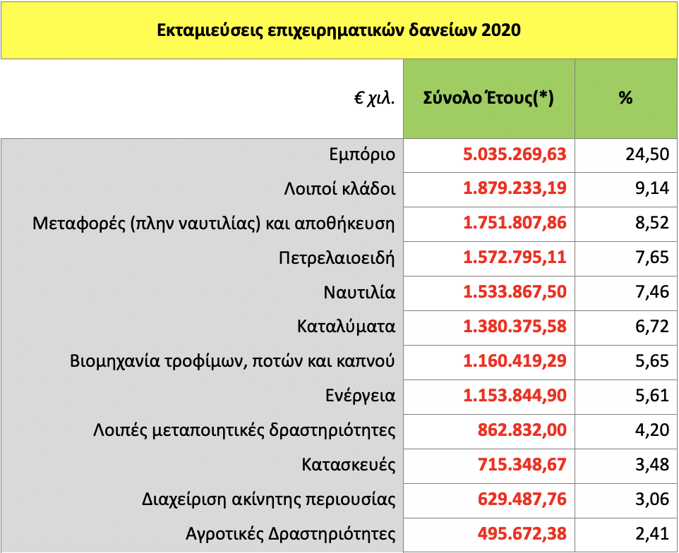 Ειδικά το εμπόριο, ο κλάδος που δέχθηκε το σοβαρότερο πλήγμα από την επιδημιολογική κρίση, απορρόφησε το 25,45% της συνολικής χρηματοδότησης (5 δισ. ευρώ).