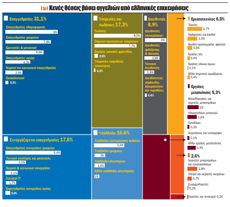 Έναν ανάγλυφο "χάρτη" των κενών θέσεων απασχόλησης στην ελληνική οικονομία προσφέρει η πλατφόρμα Skills-OVATE του Ευρωπαϊκού Κέντρου για την Ανάπτυξη της Επαγγελματικής Κατάρτισης (European Centre for the Development of Vocational Training-Cedefop).