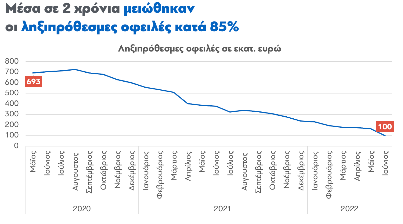 Τον Μάιο του 2020, οι ληξιπρόθεσμες οφειλές προς τους εν αναμονή συνταξιούχους ανέρχονταν σε 693 εκατομμύρια ευρώ. Τον Μάιο του 2022, το ποσό αυτό έχει μειωθεί κατά 75%, φτάνοντας στα 156 εκατομμύρια ευρώ. Μάλιστα, τον Ιούνιο, παρατηρείται ακόμα μεγαλύτερη μείωση, καθώς το ποσό κυμαίνεται στα 100 εκατομμύρια ευρώ και η αντίστοιχη μείωση φτάνει στο 85%, τα οποία και θα αποδοθούν στους δικαιούχους μέχρι το τέλος Αυγούστου.