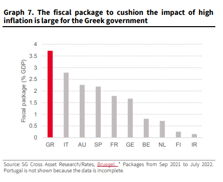 Ωστόσο, όπως τονίζει η γαλλική τράπεζα, το μεγάλο δημοσιονομικό πακέτο για την καταπολέμηση του πληθωρισμού που έχει ανακοινώσει και εφαρμόζει η ελληνική κυβέρνηση θα μπορούσε να επιβαρύνει το έλλειμμα της χώρας, κάτι που είναι πιθανό να επηρεάσει τον οίκο αξιολόγησης.