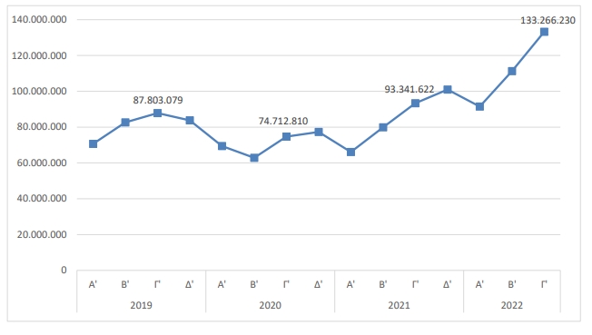 Εκρηκτική ετήσια αύξηση της τάξεως 42,8% εμφάνισε ο κύκλος εργασιών των ελληνικών επιχειρήσεων, που ξεπέρασε τα 133 δισ. ευρώ στο τρίτο τρίμηνο του 2022.