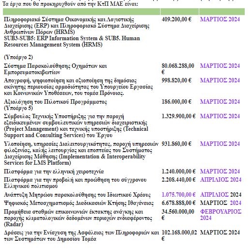 Σύστημα Παρακολούθησης Οχημάτων και Εμπορευματοκιβωτίων, Ανάπτυξη Μητρώου Παρακολούθησης του Ιδιωτικού Χρέους, Προμήθεια σταθμών επικοινωνιών έκτακτης ανάγκης και παροχής κλιματολογικών δεδομένων περιοχών ενδιαφέροντος (Radar), Πλατφόρμα για την ελληνική χειροτεχνία, αλλά και Πλατφόρμα για την προβολή και προώθηση του σύγχρονου ελληνικού πολιτισμού, είναι ορισμένα από τα έργα που θα προκηρυχθούν από την Κοινωνία της Πληροφορίας τους επόμενους δύο με τρεις μήνες.