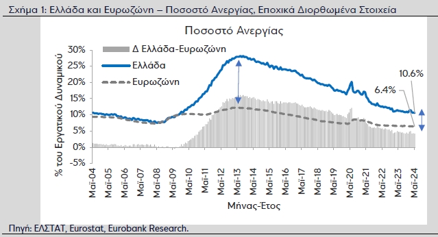 Eurobank: "Καμπανάκι" για την επιβράδυνση στο 5μηνο του ρυθμού μείωσης του ποσοστού ανεργίας