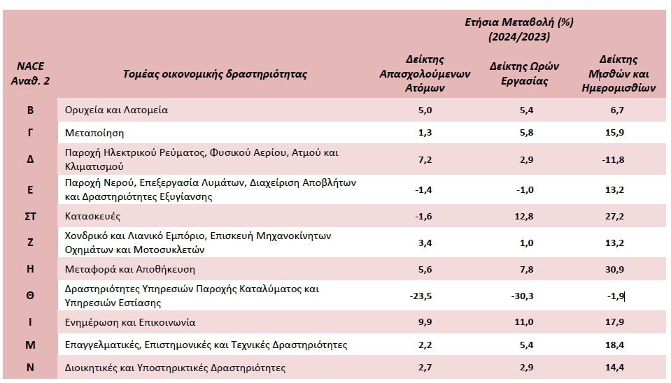 Σημαντική αύξηση καταγράφουν το β' τρίμηνο οι δείκτες απασχόλησης και μισθών σε τομείς της οικονομίας που αναπτύσσονται ραγδαία, όπως οι κατασκευές και η μεταφορά-αποθήκευση, ενώ στο αντίποδα, στις υπηρεσίες παροχής καταλύματος και στην εστίαση υποχώρησαν απεικονίζοντας την εποχικότητα του κλάδου. Στο σύνολο της οικονομίας ο δείκτης μισθών και ημερομισθίων σημείωσε αύξηση 13,2% το β' τρίμηνο σε σχέση με το αντίστοιχο πέρυσι.