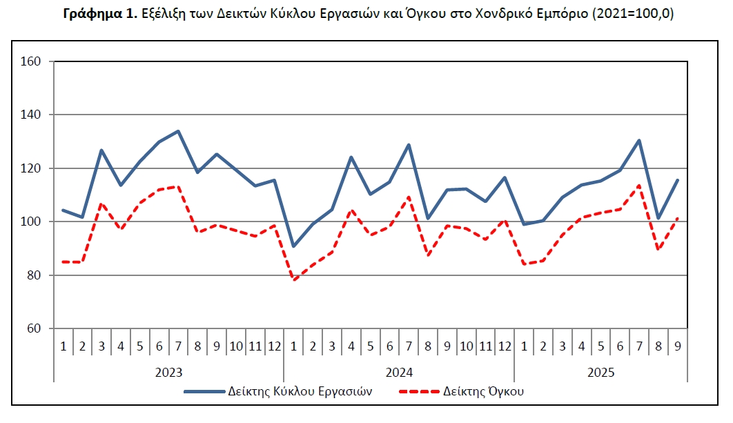 Ανοδικά κινήθηκε ο τζίρος και ο όγκος στο χονδρικό εμπόριο το γ' τρίμηνο του 2025 σύμφωνα με τα στοιχεία που έδωσε σήμερα στη δημοσιότητα η Ελληνική Στατιστική Αρχή.