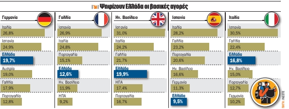Η Ελλάδα, σύμφωνα με τη μελέτη, βρίσκεται σε όλες τις υπό εξέταση αγορές εντός της πρώτης πεντάδας προτιμήσεων, με μοναδική εξαίρεση την Ισπανία, όπου βελτίωσε ωστόσο τη θέση της και ανέβηκε στην 6η.