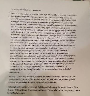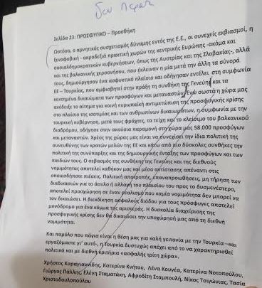Συγκεκριμένα, οι "53" είχαν καταθέσει τροπολογία εκφράζοντας την διαφωνία τους με τη συμφωνία Τουρκίας- Ευρώπης για το προσφυγικό, η οποία απορρίφθηκε στο σύνολο της. Δεκτή έγινε ωστόσο η διαφωνία που διατύπωσαν σχετικά με θετική αναφορά στο πρόσωπο του Προκόπη Παυλόπουλου, η οποία περιλαμβανόταν στο αρχικό κείμενο θέσεων του ΣΥΡΙΖΑ.