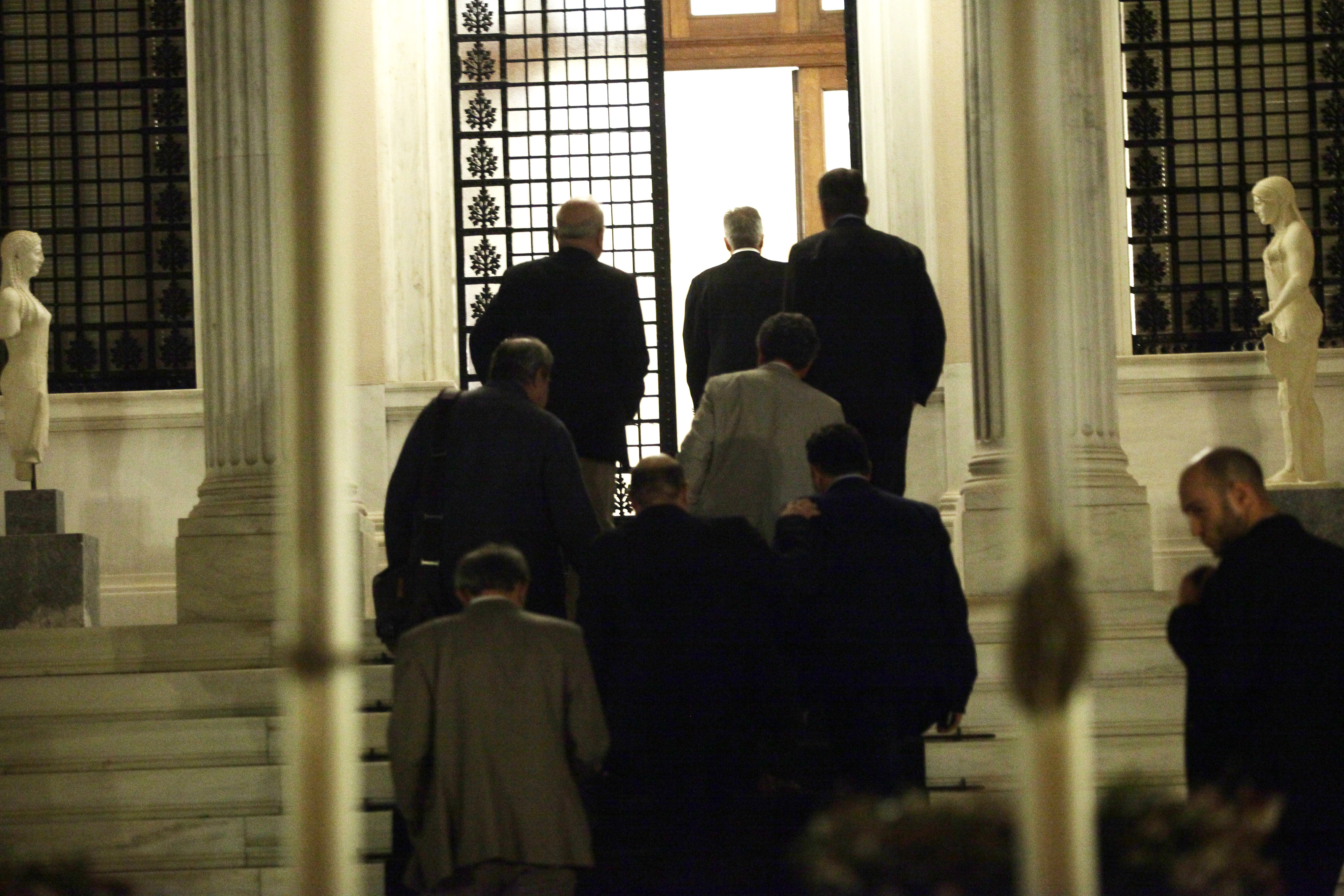Πρώτοι αποχώρησαν οι Ν. Φίλης, Γ. Δραγασάκης, Ν. Παρασκευόπουλος, Ν.Κοτζιάς και ο Γ. Βαρεμένος. Εξάλλου έχουν ήδη αποχωρήσει από το Μαξίμου και οι κύριοι Κουρουμπλής, Κουίκ,Σκουρλέτης και Τόσκας αφήνοντας πίσω στο Μαξίμου τον Κώστα Ζουράρι να παίζει... πιάνο στους βουλευτές.
