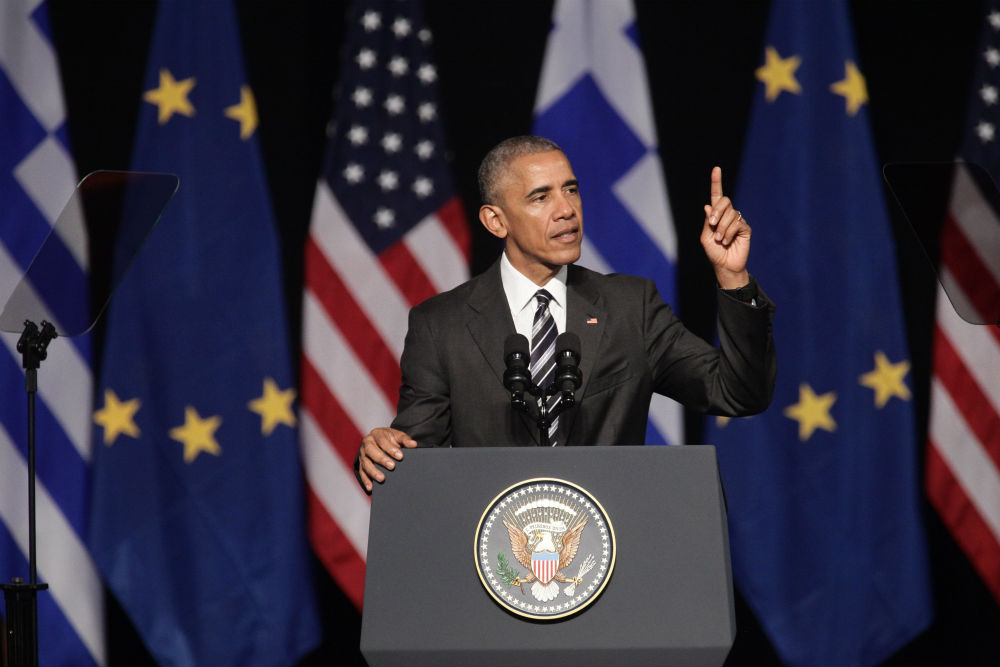 "Αυτό που πιστεύω μετά από οκτώ έτη στην προεδρία των ΗΠΑ είναι η ζωή δια της αξιοπρέπειας. Αυτά τα μαθήματα εν συνόλω είναι παγκόσμια και είναι μαθήματα που καίνε σε κάθε ανθρώπινη καρδιά...Κάποιες χώρες, ενώ υπάρχουν εκλογές, δεν έχουν πραγματικά δημοκρατικό πολίτευμα. Εμείς ως χώρα πιστεύουμε στις ιδέες και τις αξίες που γεννήθηκαν εδώ πριν από αιώνες... Η Δημοκρατία μας έδειξε ότι είμαστε πιο ισχυροί από τους τρομοκράτες. Εκείνοι προσπάθησαν να αλλάξουν την ζωή των ανθρώπων δια της βίας και να μας κάνουν να παρεκκλίνουμε από τις δικές μας αξίες. Η Δημοκρατία είναι ισχυρότερη”, ανέφερε, για να εξάρει τη στάση της χώρας μας στο καυτό ζήτημα του προσφυγικού-μεταναστευτικού, επισημαίνοντας πως η Ελλάδα δεν πρέπει να μείνει μόνη της.
