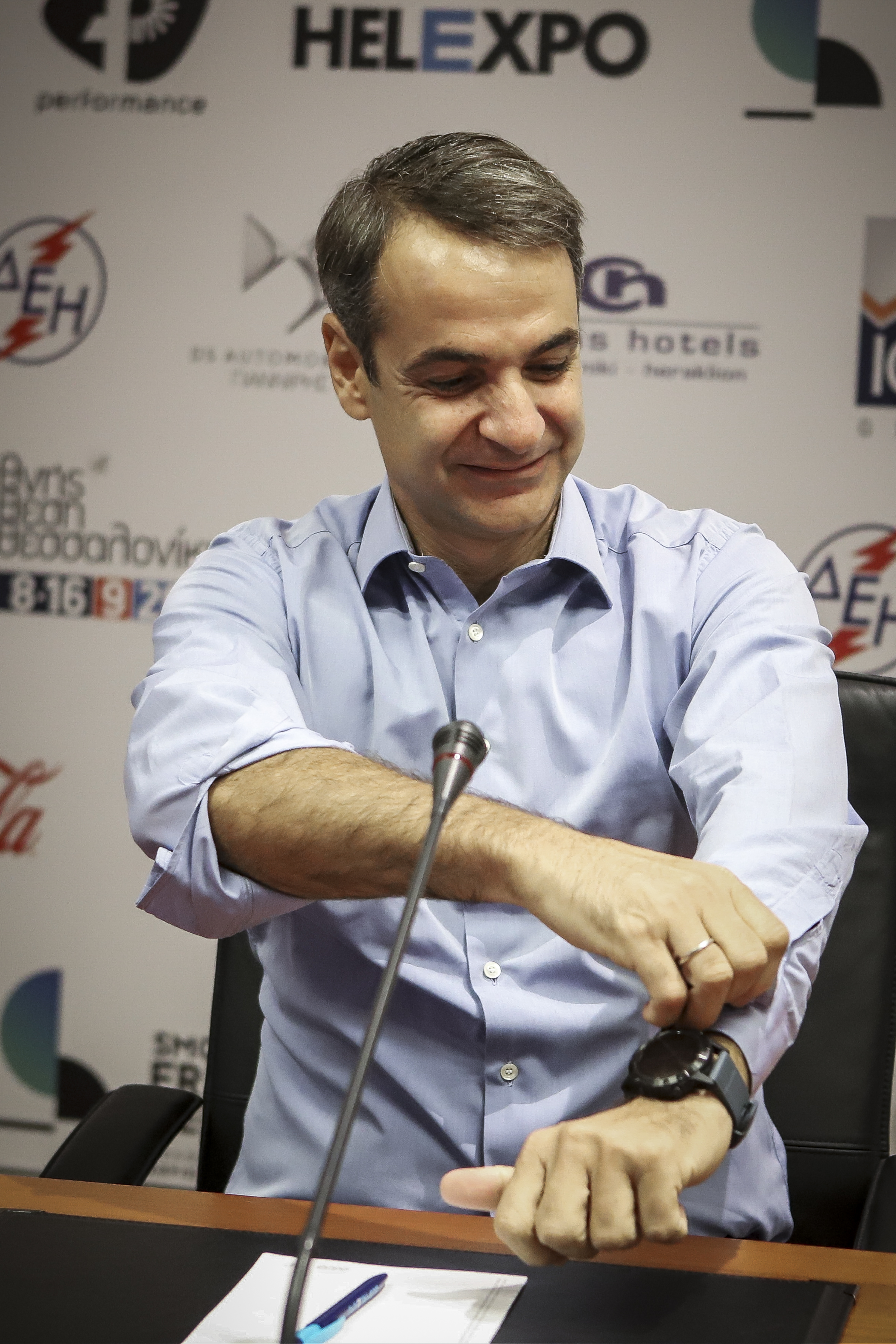Αμέσως μετά άρχισε περιοδεία στα περίπτερα, συνοδευόμενος από τον γραμματέα της πολιτικής επιτροπής, Λευτέρη Αυγενάκη, βουλευτές και στελέχη του κόμματος.