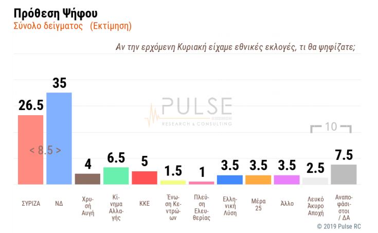 Δημοσκόπηση Pulse: Προβάδισμα 9 μονάδων για τη ΝΔ - Αυτοδυναμία σε όλα τα σενάρια