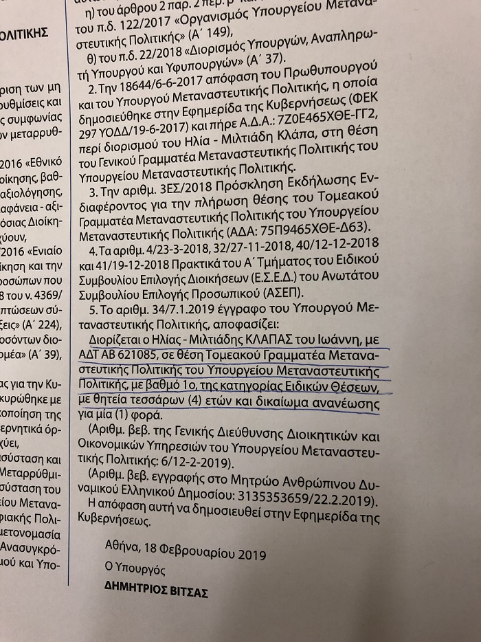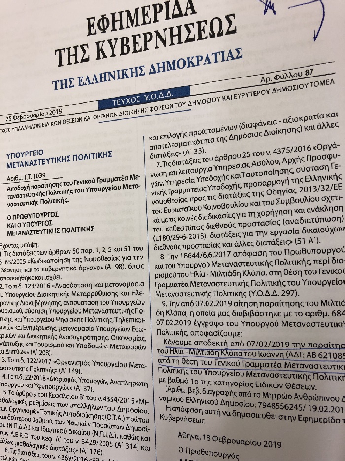 Μάλιστα ο Γιώργος Γεραπετρίτης έδειξε στην Ολομέλεια το ΦΕΚ όπου την ίδια μέρα υπήρχε η πράξη παραίτησης του ΓΓ και ταυτόχρονα η …τοποθέτησή του στην ίδια θέση με την άλλη διαδικασία".