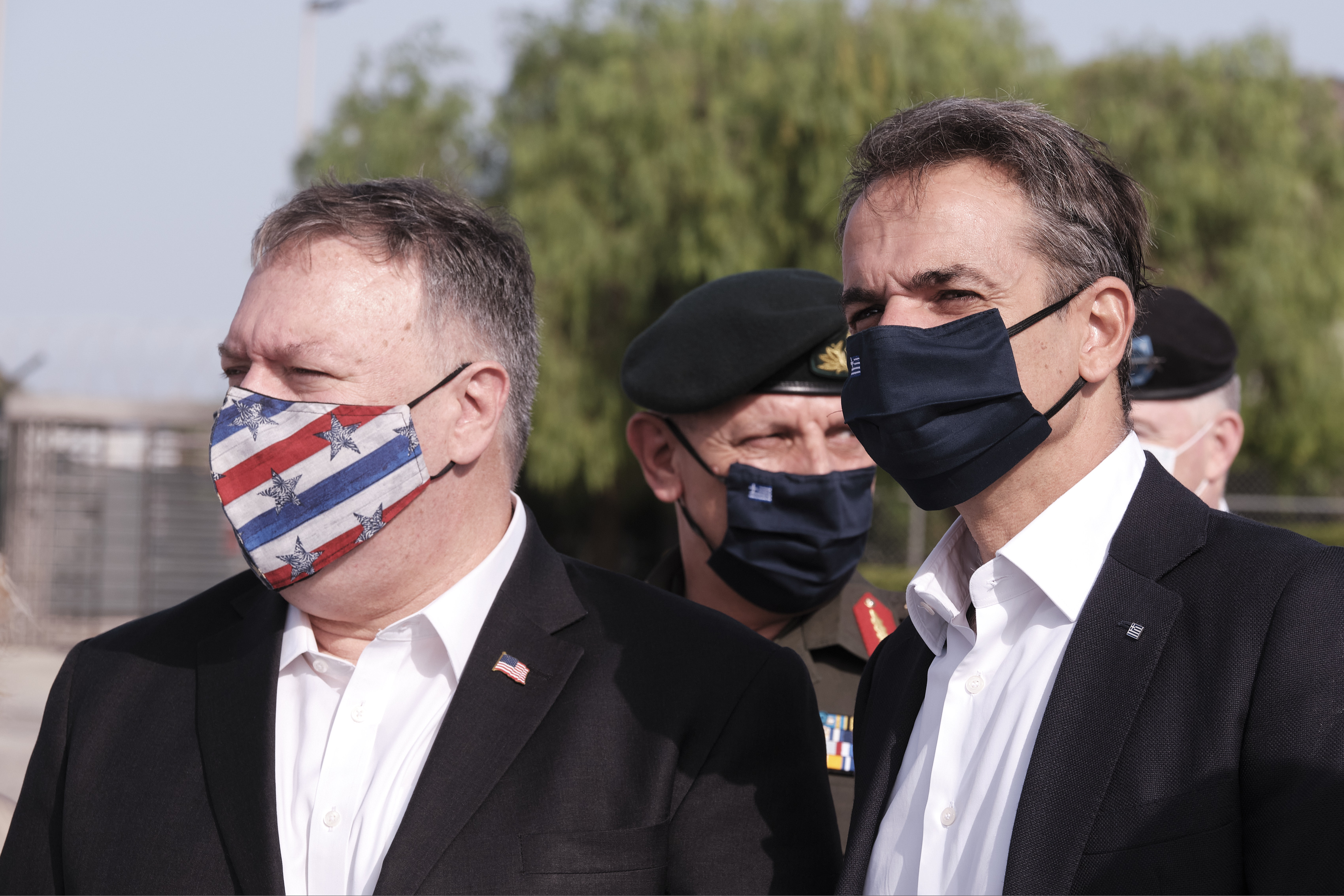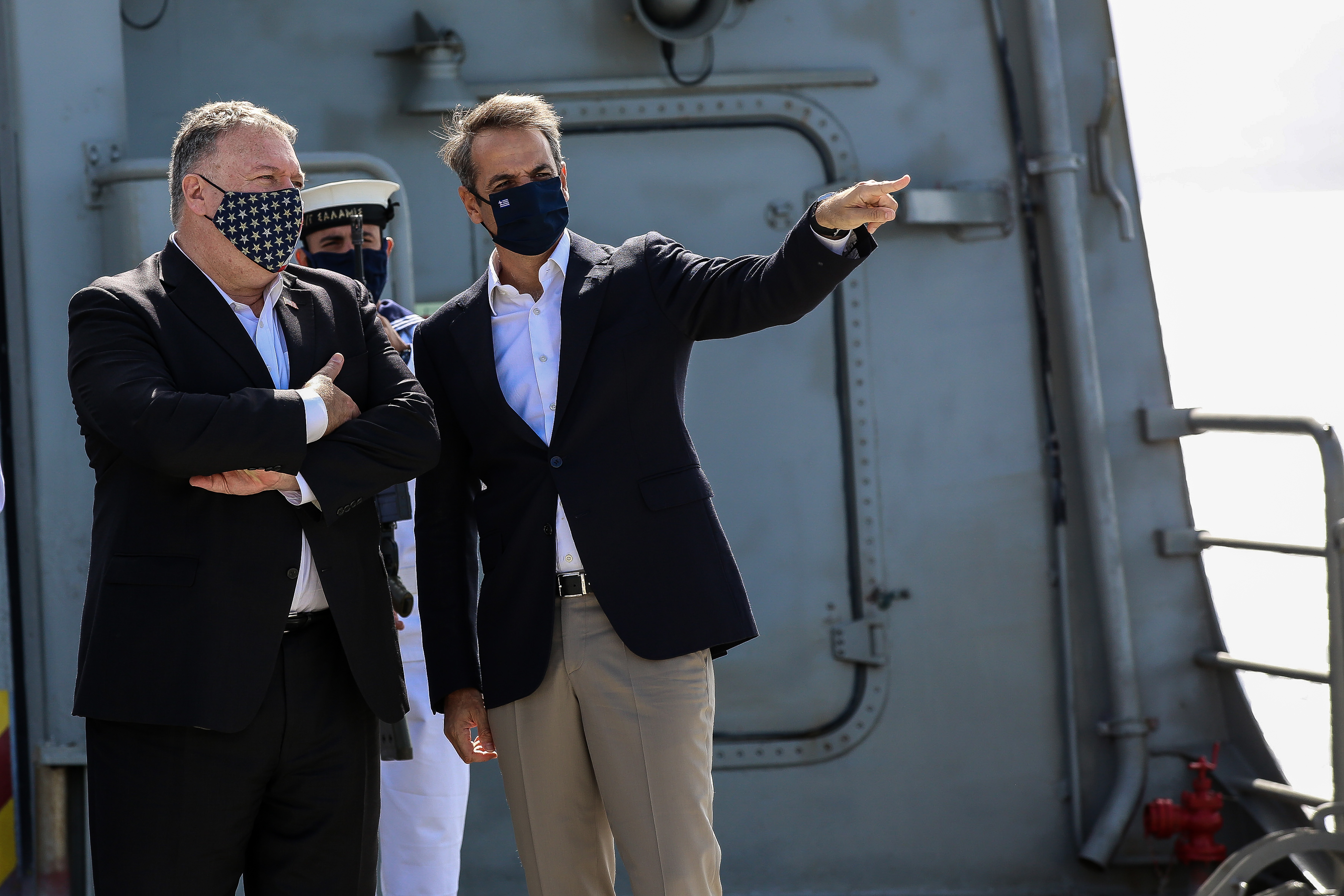 Οι κύριοι Μητσοτάκης και Πομπέο επισκέφθηκαν τη Ναυτική Βάση στο Μαράθι όπου ενημερώθηκαν για τις δυνατότητες που έχουν τα ταχύπλοα CCM (Combat Craft Medium), τα οποία βρίσκονται σε προβλήτα που έχει παραχωρηθεί στις αμερικανικές δυνάμεις. Λίγα λεπτά αργότερα, σε κοντινό σημείο της Βάσης, ανέβηκαν στο ελικοδρόμιο της ελληνικής Φρεγάτας ΜΕΚΟ "Σαλαμίς". Η άφιξή τους αναγγέλθηκε από τα μεγάφωνα της φρεγάτας (και στα Αγγλικά) ενώ τους ανέμενε επί του πλοίου άγημα απόδοσης τιμών. Στη διευρυμένη συνάντηση στην 115 Πτέρυγα μάχης, πέραν των κ. Μητσοτάκη και Πομπέο, συμμετείχαν από ελληνικής πλευράς οι κύριοι Δένδιας, Παναγιωτόπουλος, Φλώρος και Σουρανή.