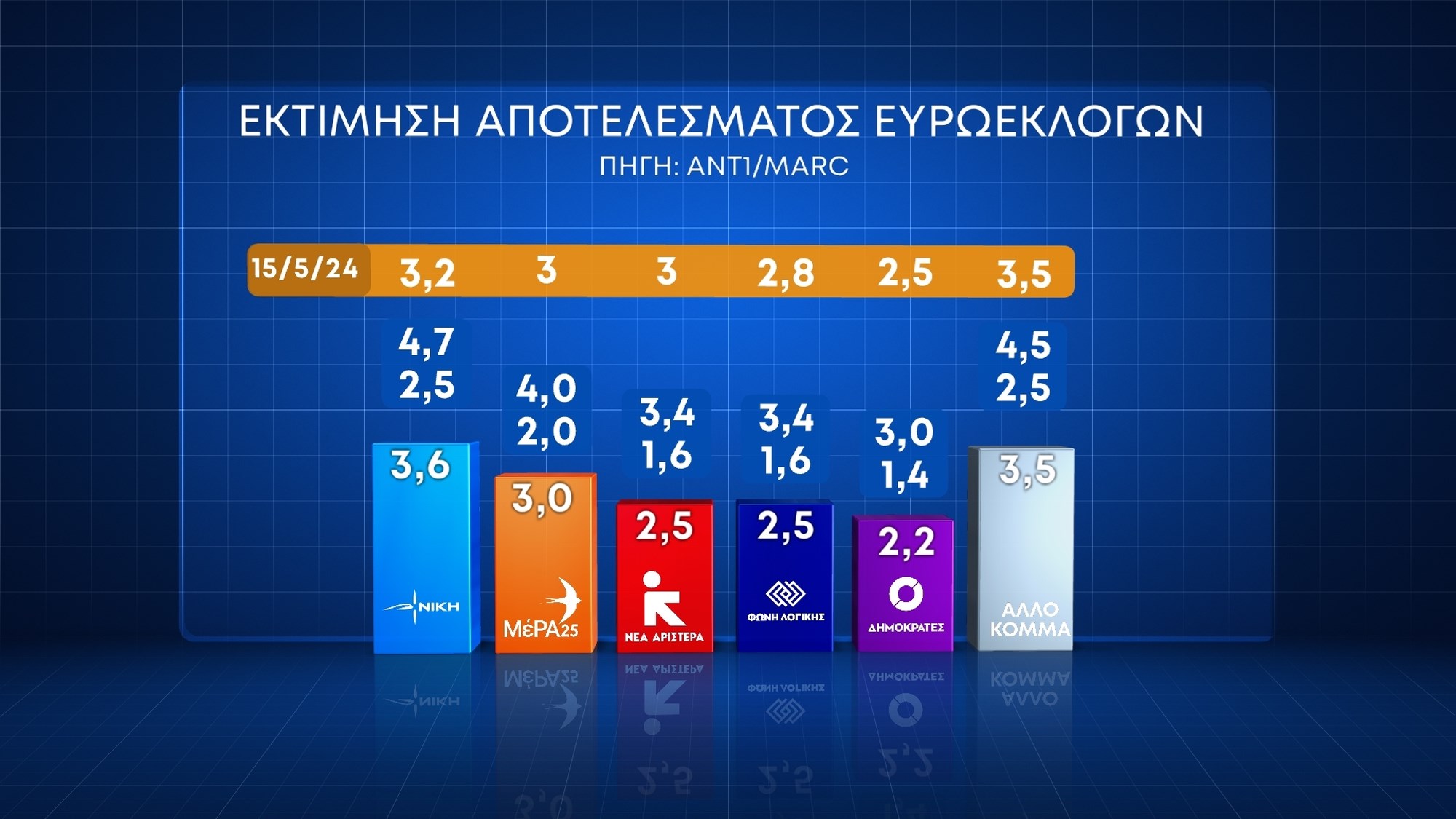 Στην τελική ευθεία για τις ευρωεκλογές, ο ΑΝΤ1 παρουσίασε τη δημοσκόπηση της Marc που δείχνει τις τάσεις του εκλογικού σώματος ενόψει της 9ης Ιουνίου.
