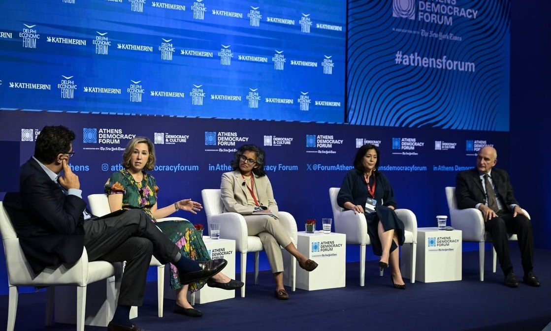 Με τον χρόνο να μετρά αντίστροφα για τις αμερικανικές εκλογές του Νοεμβρίου που εν πολλοίς θα καθορίσουν όχι μόνο την επόμενη τετραετία των ΗΠΑ, αλλά και πολλών χωρών στον κόσμο, τέσσερις άνθρωποι των New York Times ανέλυσαν την κατάσταση που επικρατεί αυτή τη στιγμή στη χώρα τους, στο πλαίσιο του 12ου Athens Democracy Forum που πραγματοποιήθηκε στην Αθήνα από το Democracy & Culture Foundation σε συνεργασία με τους The New York Times.