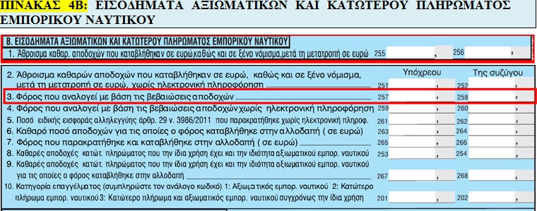 Θα δούμε όμως και όλα τα "μυστικά" του πίνακα 4Β με το εισόδημα αξιωματικών και κατώτερου πληρώματος του Εμπορικού Ναυτικού.