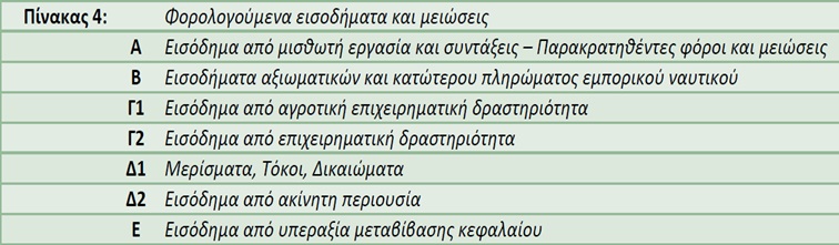 Στον πίνακα 4 όπως βλέπουμε στον παρακάτω, υπάρχουν επτά επιμέρους υποπίνακες ανάλογα με την προέλευση του εισοδήματος.