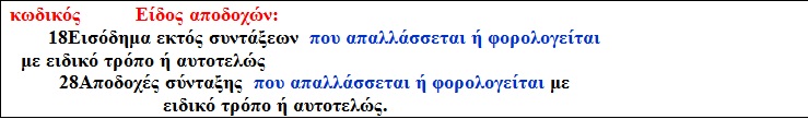 Εισοδήματα που, απαλλάσσονται από το φόρο ή φορολογούνται με ειδικό τρόπο. (είναι τα ίδια που αναγράφονται στους κωδικούς 659-660).