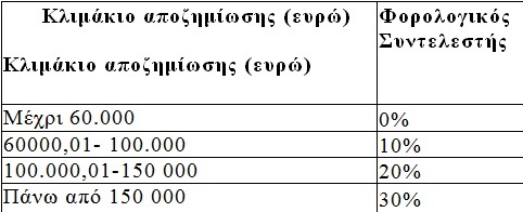 5. Αποζημιώσεις για τη λύση ή καταγγελία της εργασιακής σχέσης: Αυτοτελής φορολόγηση με την παρακάτω κλίμακα και εξάντληση της φορολογικής υποχρέωσης. (Άρθρο 15, παρ. 3. Ο φόρος παρακρατείται και αποδίδεται με την προσωρινή δήλωση Μ.Υ. Άρθρα 59,60.πολ.1104/9.4.2014,πολ. 1049/11.2.2014, πολ. 1051/19.2.2015).