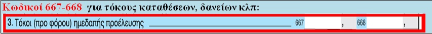Δηλώνεται ο φόρος που έχει παρακρατηθεί από τόκους που εισπράχθηκαν στην Ελλάδα και γράφτηκαν πιο πάνω στους κωδ. 667-668.