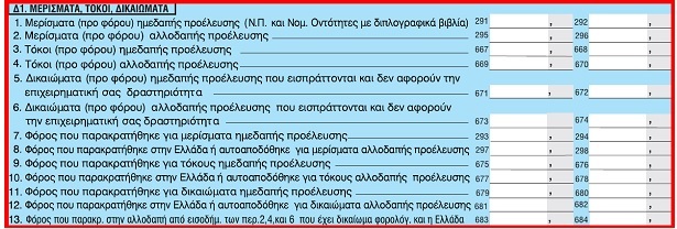 Εδώ δηλώνονται όπως παραπάνω, τα κέρδη που διανέμουν οι αλλοδαπές εταιρίες, πριν από την αφαίρεση του φόρου που παρακρατήθηκε.