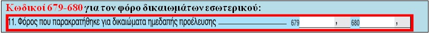 Δηλώνεται ο φόρος που έχει παρακρατηθεί από δικαιώματα που εισπράχθηκαν στην Ελλάδα και δηλώθηκαν πιο πάνω στους κωδικούς 671-672.