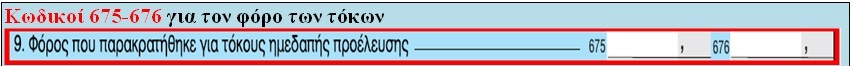 Ο φόρος που παρακρατήθηκε για τους τόκους γράφεται στους κωδ. 675-676.