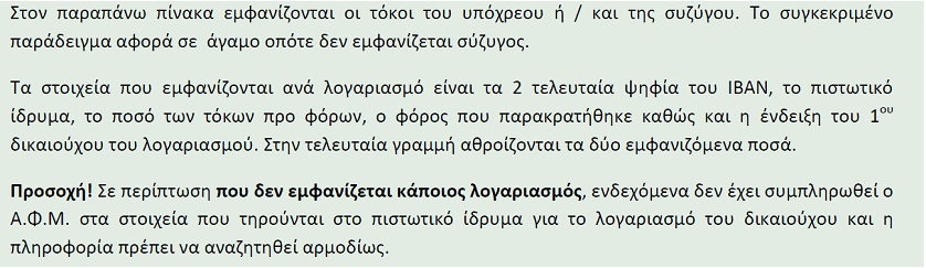 - Στις περιπτώσεις κοινών τραπεζικών λογαριασμών σε χρηματοπιστωτικά ιδρύματα (κάθε μορφής στην Ελλάδα ή στο εξωτερικό) οι τόκοι καταθέσεων δηλώνονται αναλογικά στους πραγματικούς δικαιούχους με βάση τις πραγματικές περιστάσεις.
