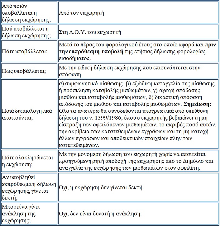 Η εκχώρηση γίνεται με δήλωση του υπόχρεου σε φόρο, η οποία υποβάλλεται στον αρμόδιο για την παραλαβή της δήλωσης φορολογίας εισοδήματός του Προϊστάμενο της Δημόσιας Οικονομικής Υπηρεσίας πριν την εμπρόθεσμη υποβολή της ετήσιας δήλωσης Φορολογίας Εισοδήματος του φορολογικού έτους που αφορά. Το Δημόσιο υποκαθίσταται στα δικαιώματα του εκχωρητή.
