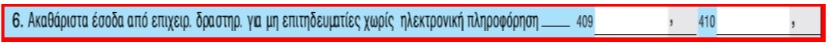 Επίσης αναφέρεται ότι για τις περιπτώσεις που για τα "τα ακαθάριστα έσοδα από επιχειρηματική δραστηριότητα των παραπάνω δικαιούχων (μη επιτηδευματιών),ο καταβάλλων τις αμοιβές τους, δεν απέστειλε ηλεκτρονικά μέσω διαδικτύου ως όφειλε, τα στοιχεία της "βεβαίωσης αμοιβών από επιχειρηματική δραστηριότητα" με βάση την ΠΟΛ.1051/19 Φεβρουαρίου 2015 Απόφαση της Γ.Γ.Δ.Ε., αυτά γράφονται πλέον από τον φορολογούμενο στους κωδικούς 409-410 του παραπάνω πίνακα 4Γ2.