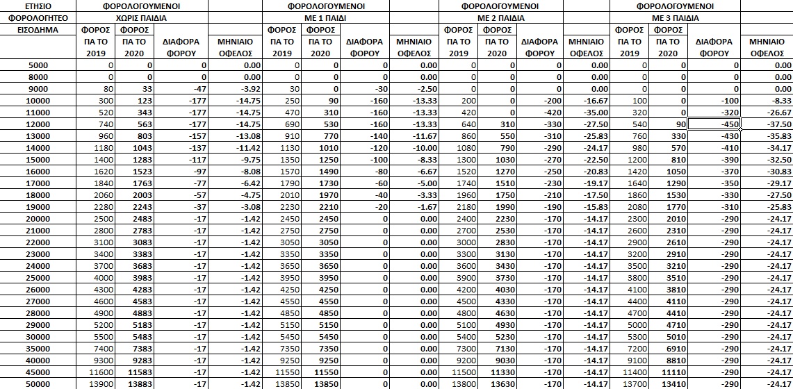 ΕΤΗΣΙΟ | Φόρος 2019 | Φόρος 2020 | Διαφορά 2019/2020 |