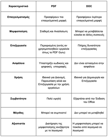 Σε αυτήν την διαμάχη η επιλογή εναπόκειται στον χρήστη για την επιλογή PDF ή DOC. Ωστόσο στην αξιολόγηση με τα παραπάνω αντικειμενικά κριτήρια καταλήξαμε ότι τα αρχεία σε μορφή PDF κερδίζουν έδαφος.
