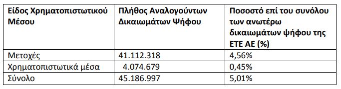 Τα δικαιώματα ψήφου αναλύονται ως εξής: